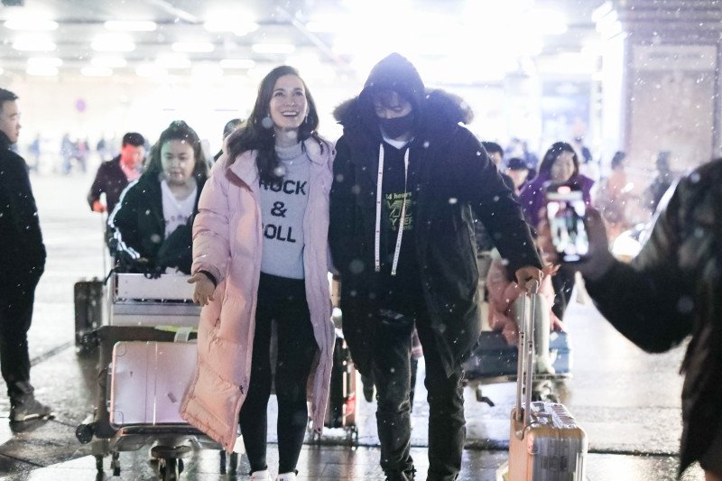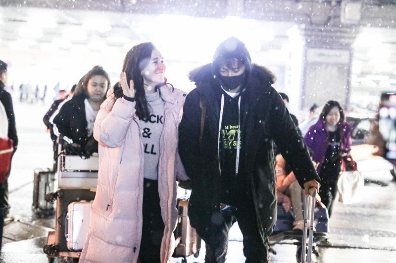 191215 Hangeng & Celina arrival at Beijing airport (from Shanghai)
