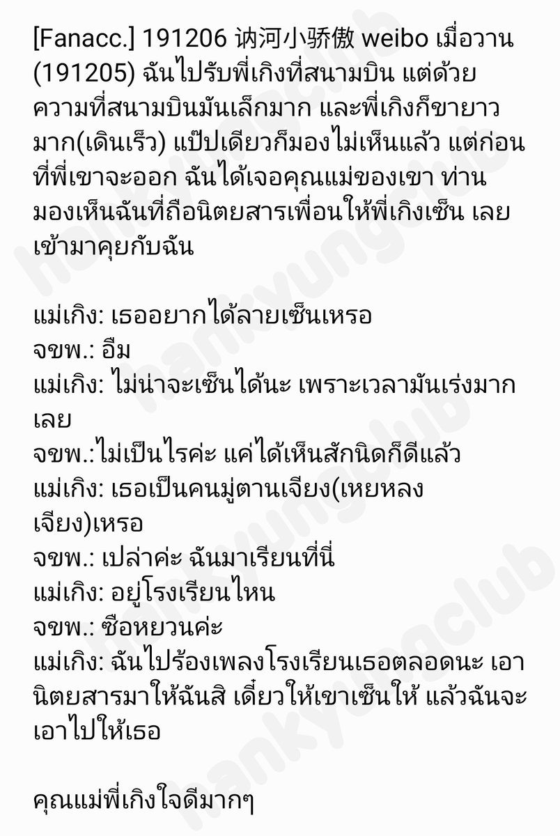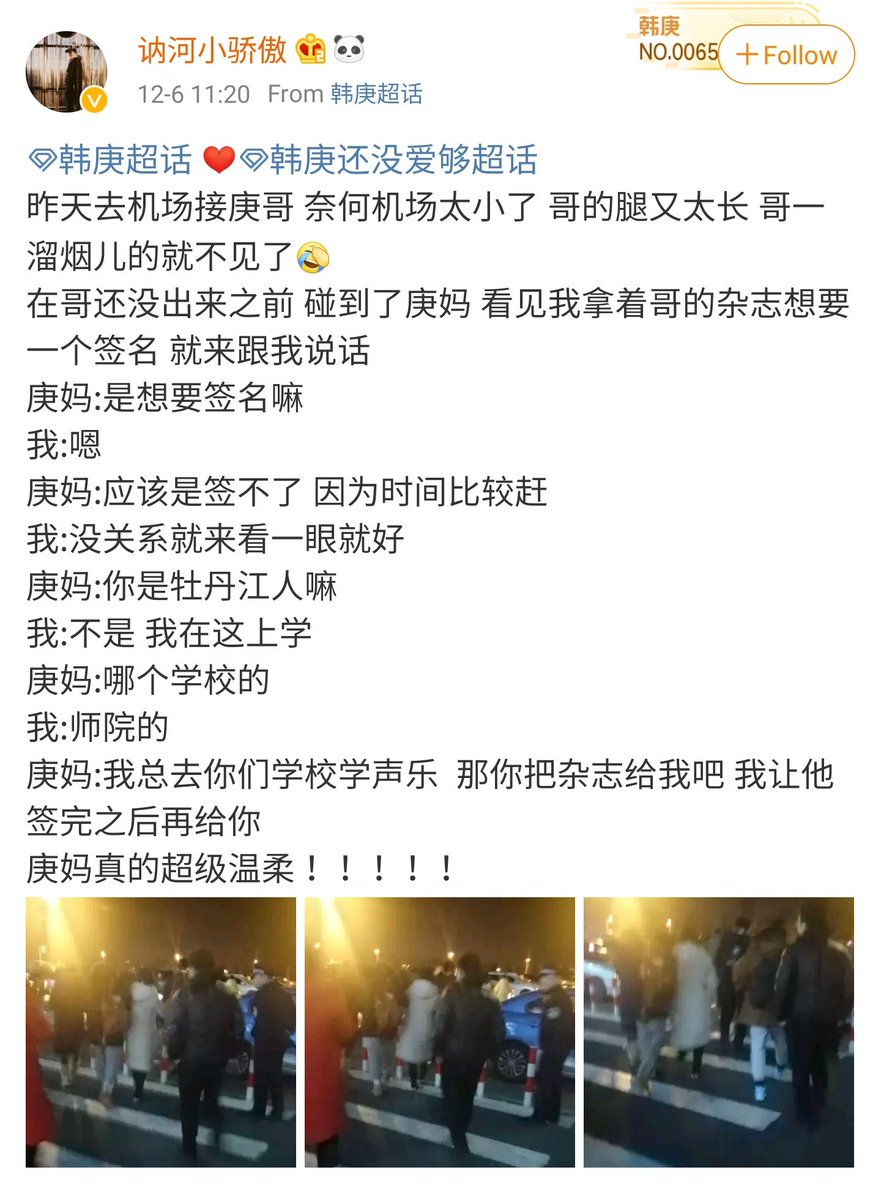 เล่าว่าหานเกิงฮีชอลอยู่ด้วยกันสามครั้งในงาน และเขาได้เห็นครบทุกครั้ง