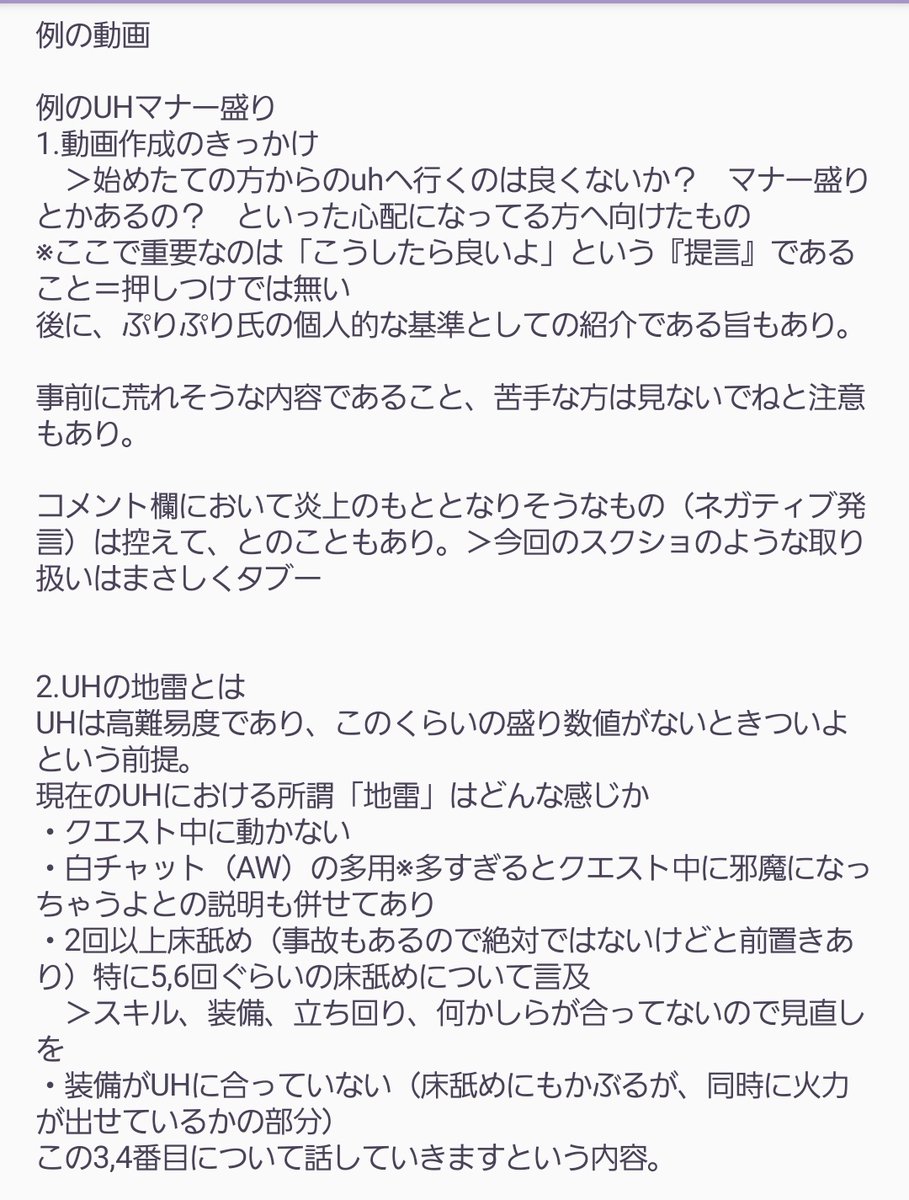 今回の炎上している動画についてざっくりまとめてみました。 それほど間違ったことは言っていないです。 uh盛り、の単語だけが独り歩きしています。 典型的な準備のできていない状態と、あくまで推奨する装備の提言であり押しつけではないものでした。 スクショ詳細