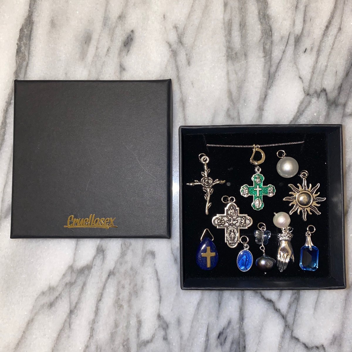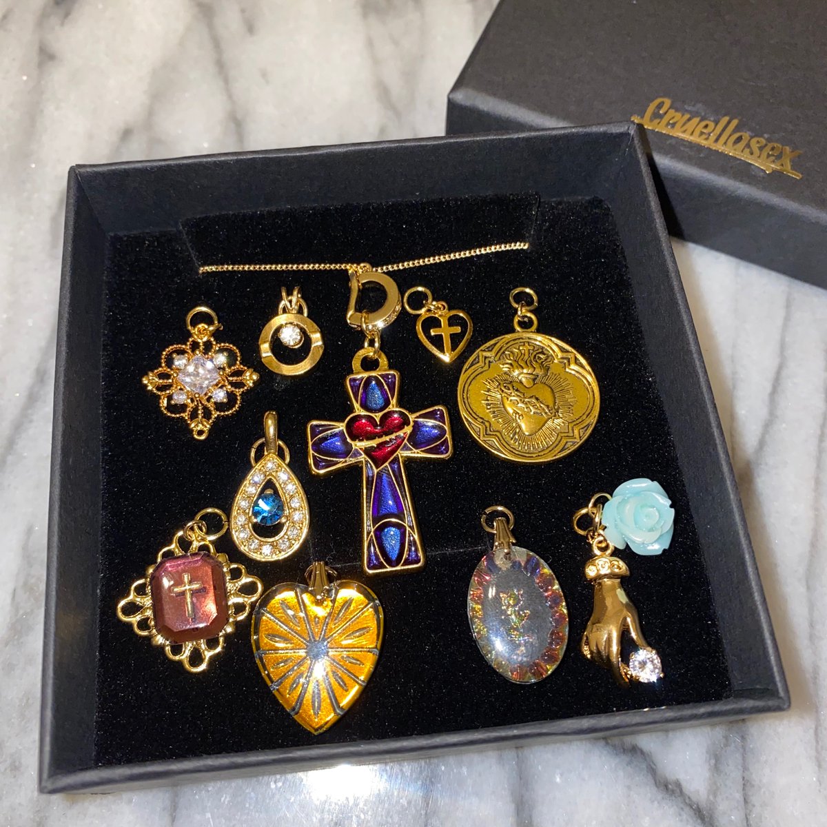 使用されているチャームは、アメリカのヴィンテージ、イタリアのメダイ、フランスのメダイ、珍しいドイツ製のメダイなどです💫