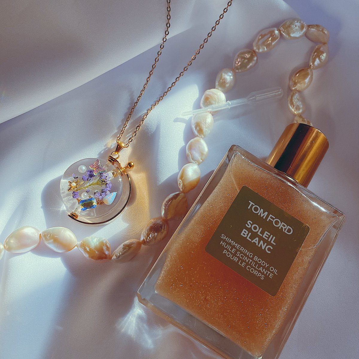 花の標本とビジューのペンダント
