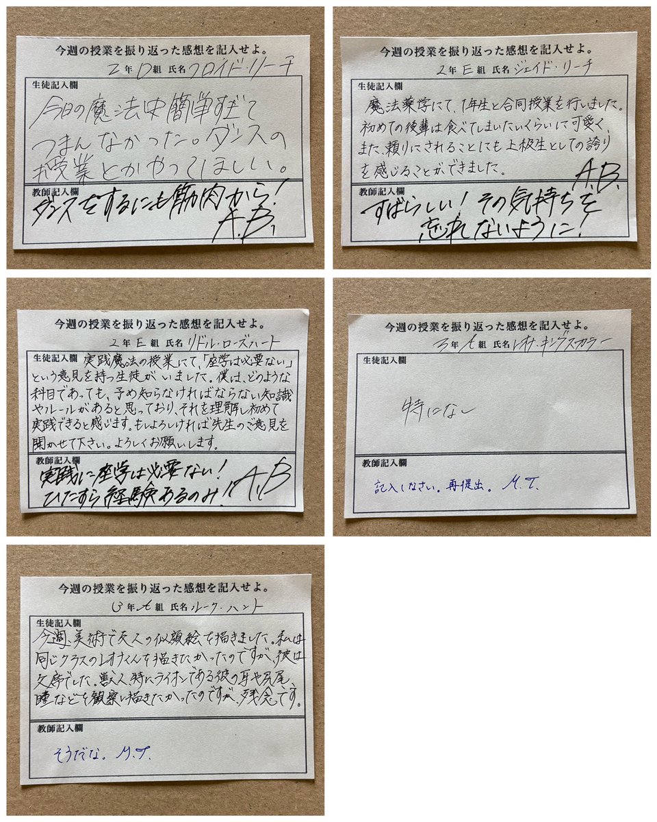 全員分の筆跡妄想。