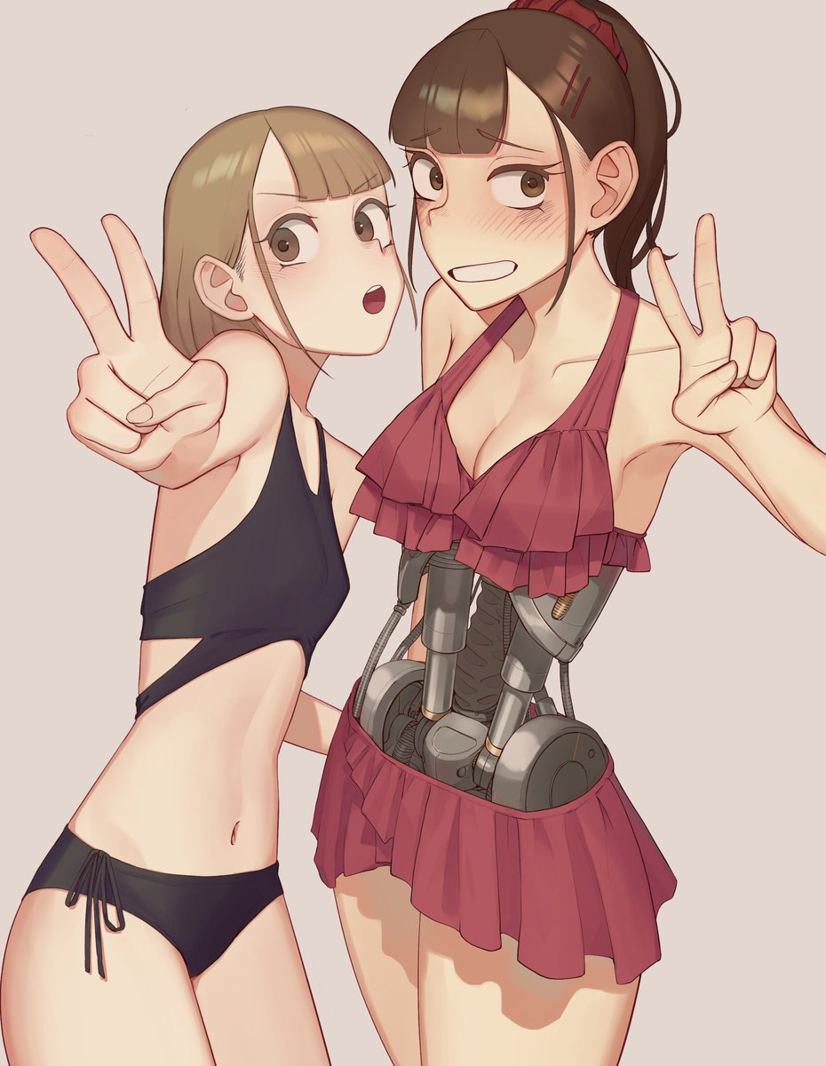 友達と水着を着てみるメカJK