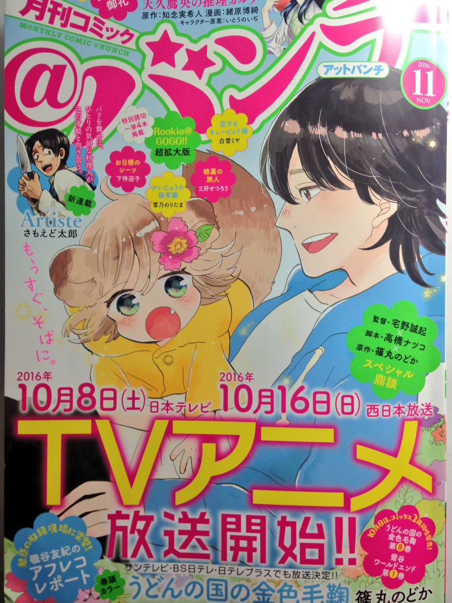 本日発売の@バンチにて表紙と巻頭カラー描かせて頂いております。あと!今月号は付録でポコと宗太のお出かけカレンダーがついてます!デザイナーさんがとっても可愛く仕上げてくれました!インタビュー記事も盛りだくさんですので何卒よろしくお願い致します!