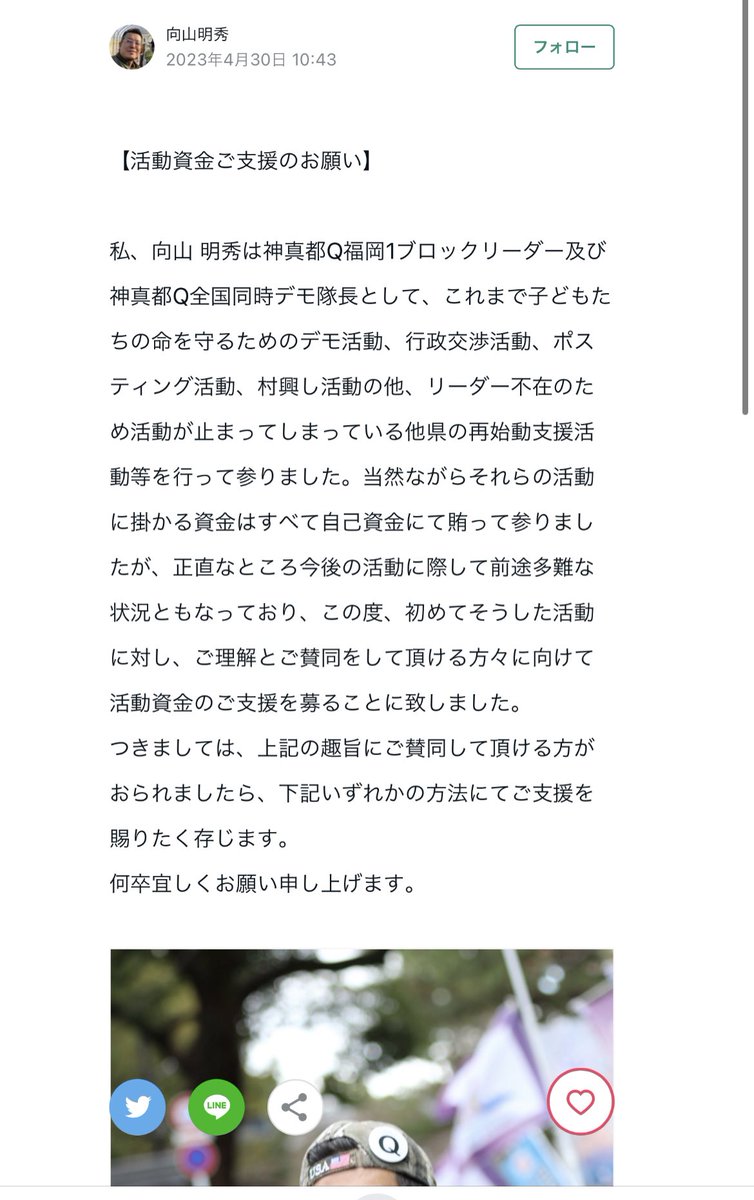 「(国際コモンロー裁判所の判決に従い)新型コロナワクチン接種に関わる用具の回収及び破壊活動を世界中の男女に認めております」って部分、特に怖い。妄想上の裁判所の判決による違法行為の正当化。