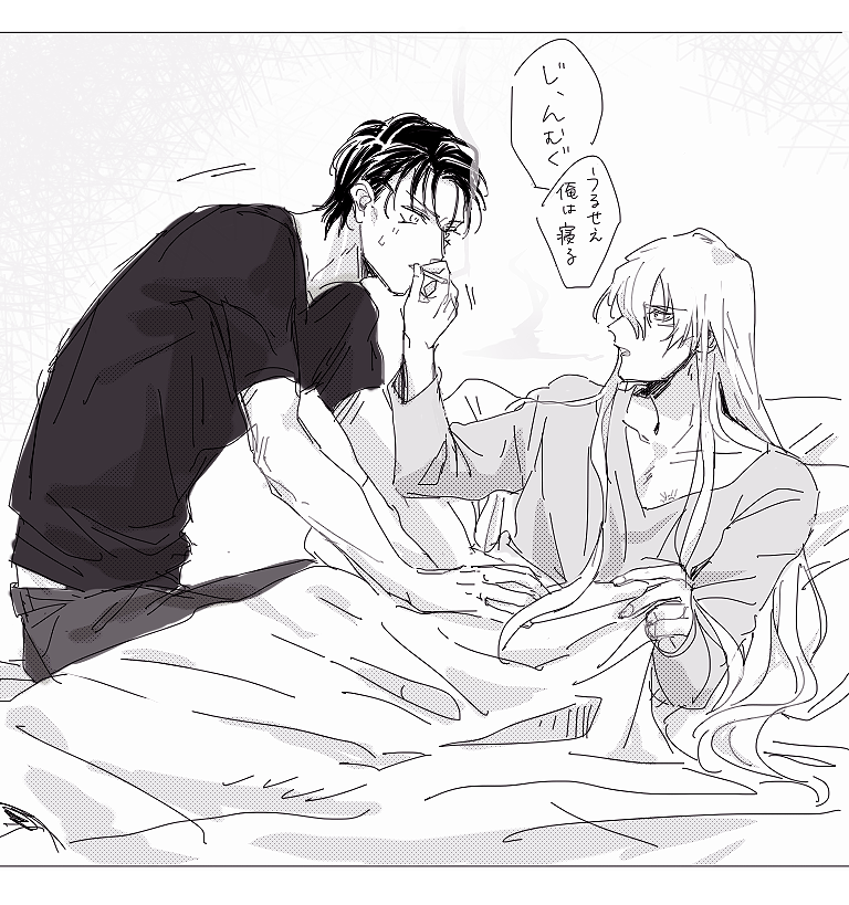 ライの活躍により任務が早めに片付けられたので褒めてくれっておねだりしたらいつもは無視するのに珍しく飴をもらえたライジンのらくがき