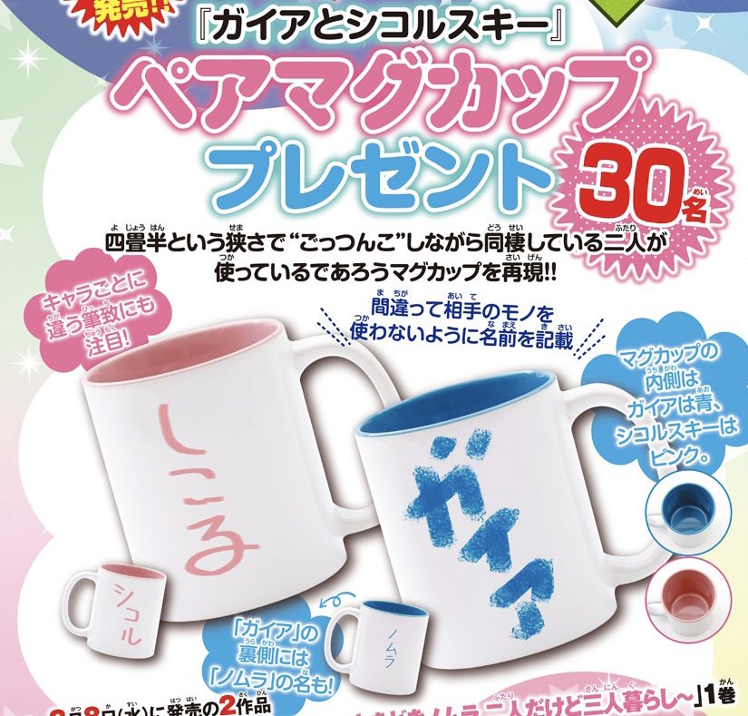 めんどくさいオタク 「われわれはキャラクターが描かれてるグッズよりも劇中でキャラクターが使っているのと同じグッズが欲しいんだ!」 秋田書店 「ガイアとシコルスキーが使っているであろうペアマグカップ作りました」 劇中で使ってねえだろ!!