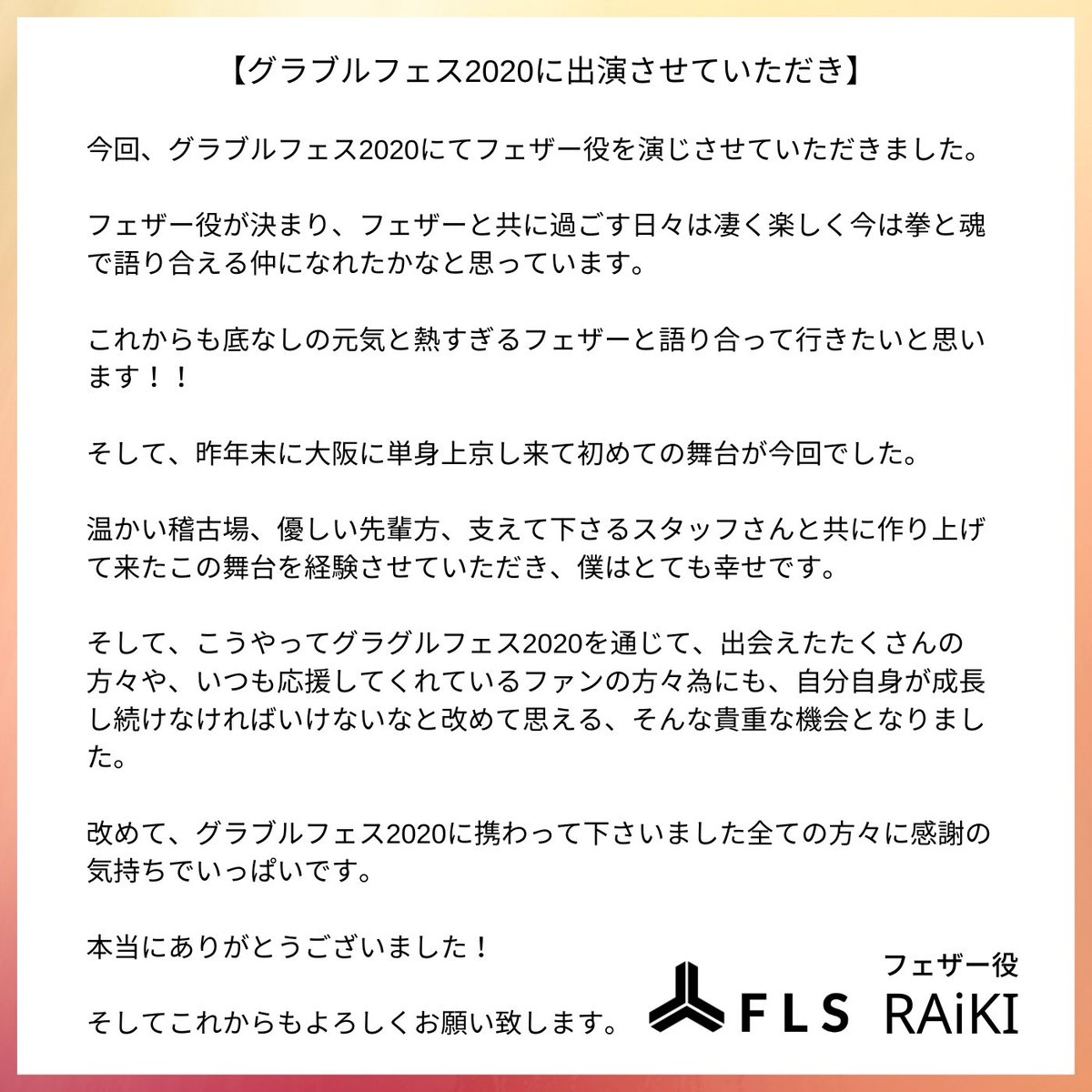 また皆さんの前で全力かでアクションできる事を楽しみにしています❤️🔥
