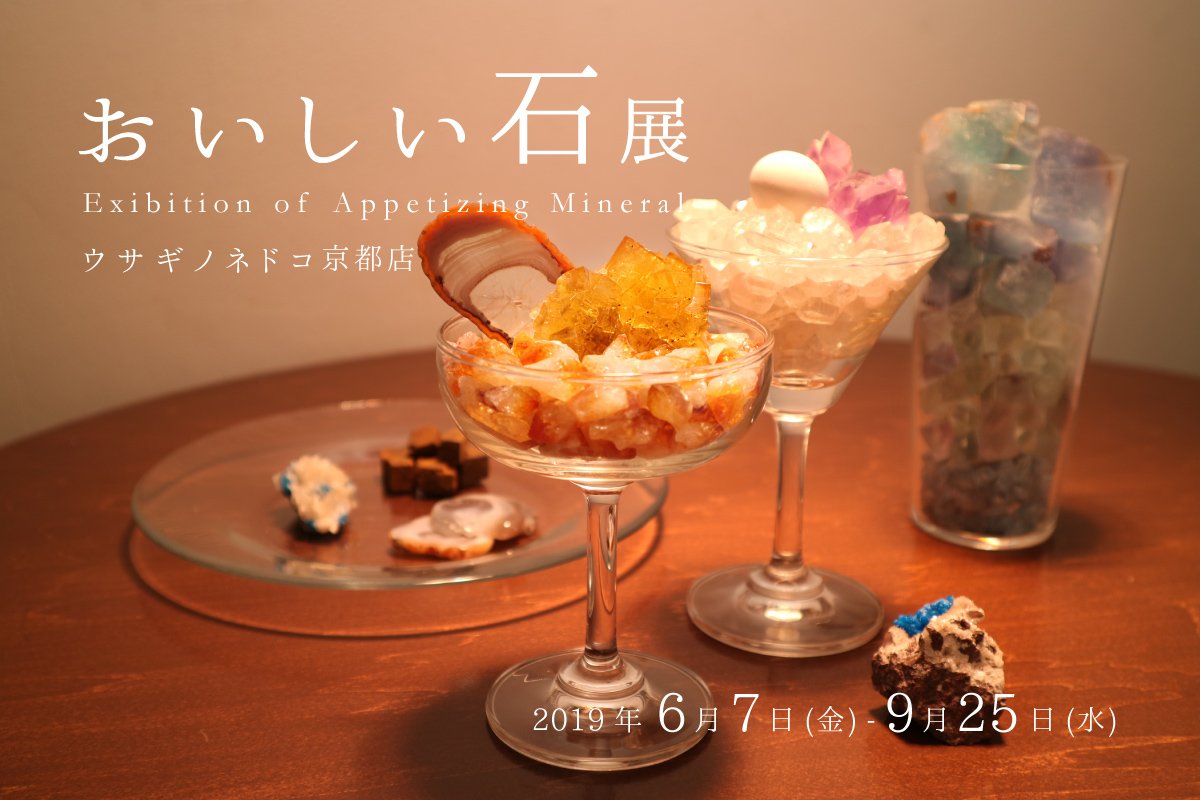 ウサギノネドコ京都店では2019年6月7日(金)〜9月25日(水)まで、企画展「おいしい石展」を開催いたします。前回のおいしい石展から2年、ご好評にお応えして再びの開催です。カフェでは新メニューも開発中!詳細はこちらのページからどうぞ→→ usaginonedoko.net/info/?id=3135