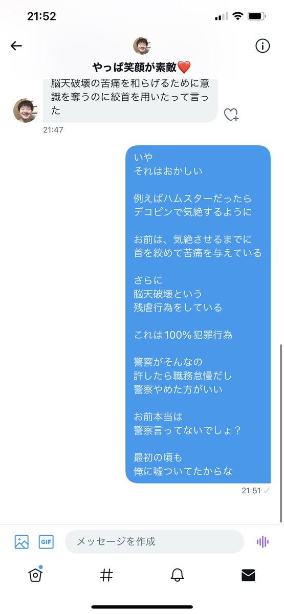 犯人くろなーたは、また猫を殺すような発言をしています...本当に許せない.... #動物虐待 twitter.com/kingren222/sta…