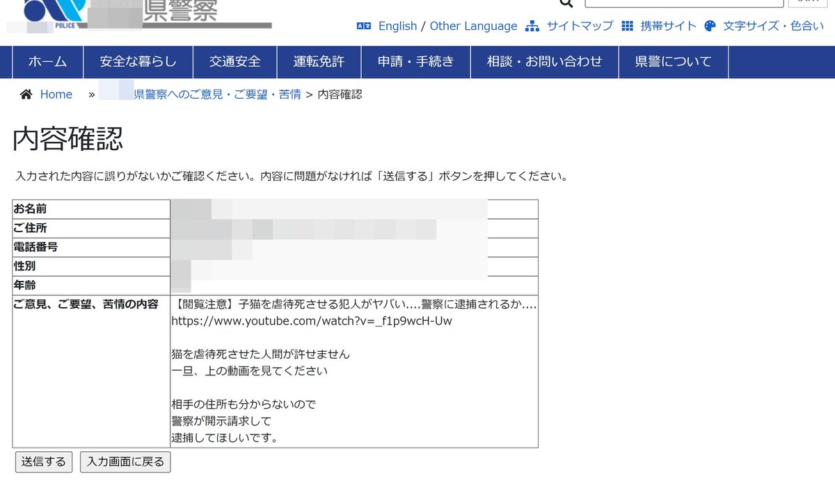 猫虐待死の件で積極的に捜査はしてもらえる事になりました。ですが、犯人がまだ逮捕されてないので、今警察で話した重要な事は口止めされています。なので、犯人逮捕されたら、警察署で何をしたかとか語ろうと思います。