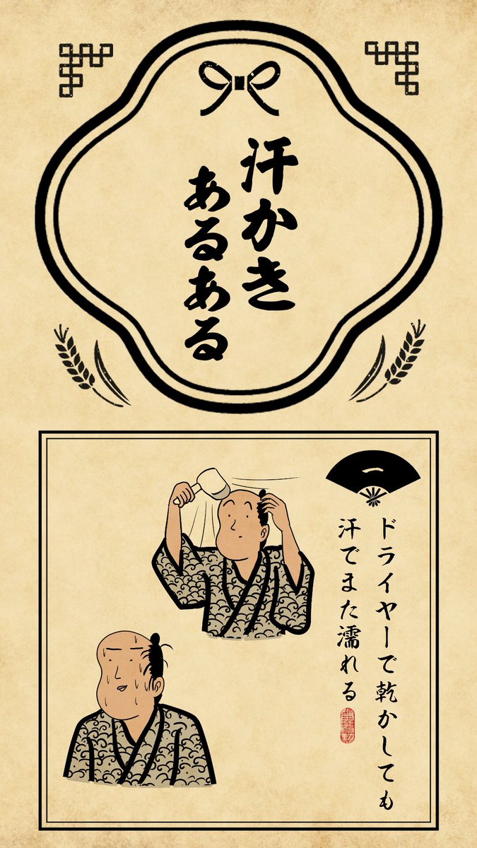 汗かきあるあるでござる。歩いてるときはそうでもないけど止まると一気に汗が出てくるでござる。