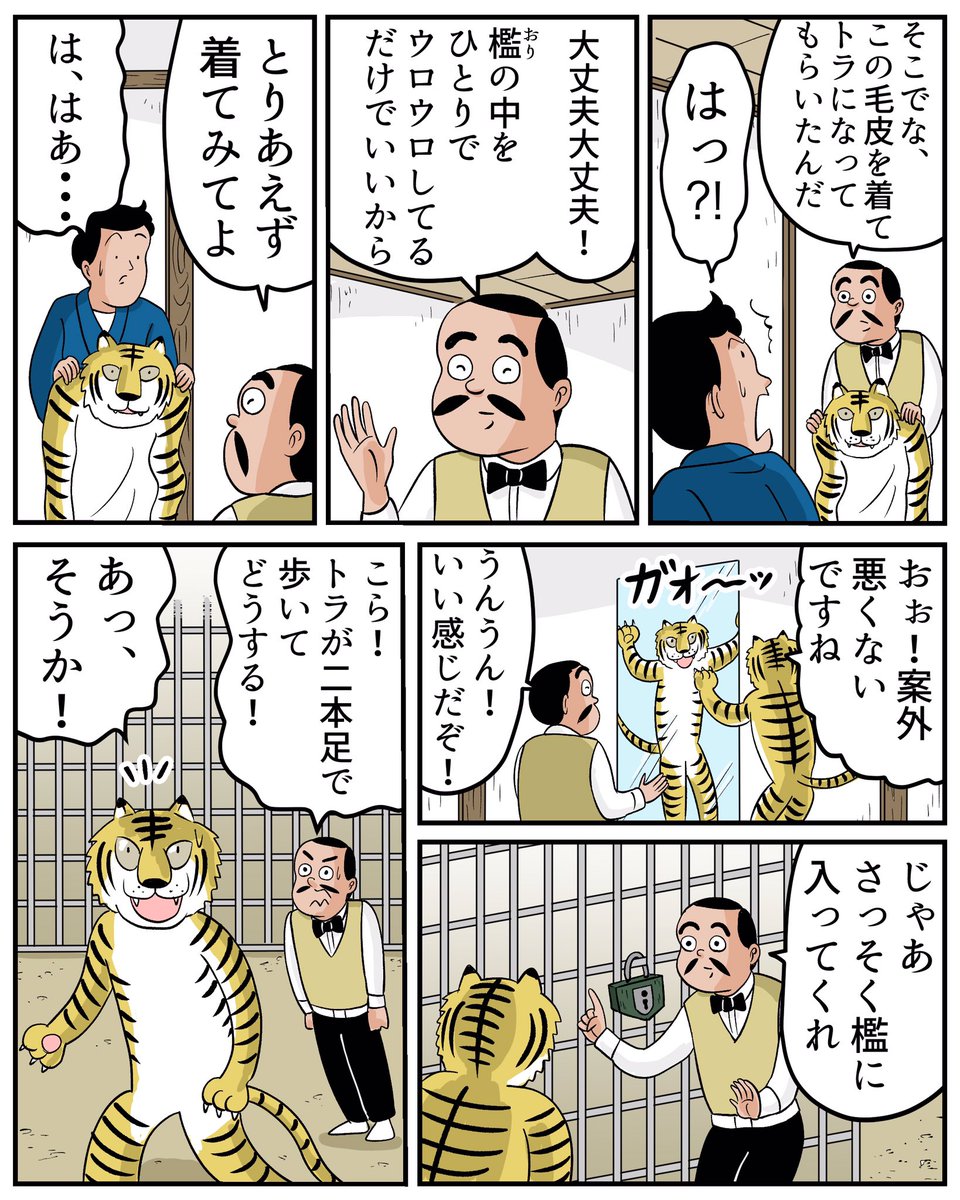落語「動物園」を漫画にしてみました。海外の滑稽話を落語に落とし込んんだものですが、逆輸入的に海外で人気の落語になっているそうです。
