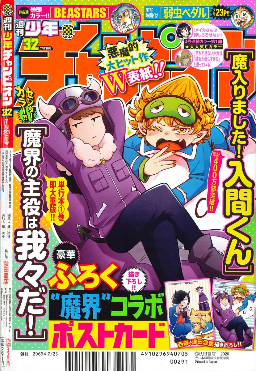 週チャン33号(7/16発売)の見本紙をGET! 今週は「魔入りました!入間くん」が巻頭カラー大増22Pで、いよいよ音楽祭が開幕するぞ!😈🎺