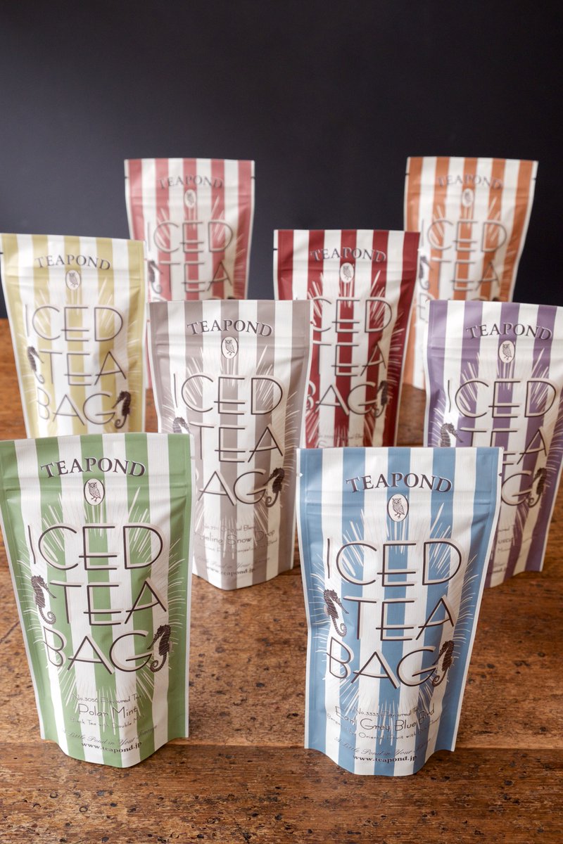 水出しでも簡単にアイスティーを楽しめる、季節限定のアイスティーバッグ。アソートセットが今年も登場です。パッケージのミニバッグがロープハンドルになり、より夏らしいデザインになりました。 縦長なのでマイボトルやペットボトルの持ち運びにもぴったりですよ。teapond.jp/products/itb00…