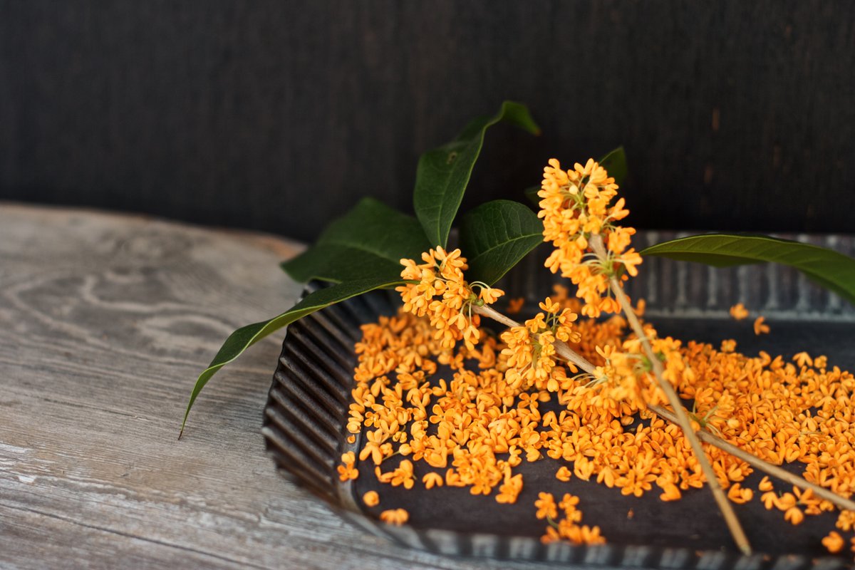 オレンジの愛らしい花を摘み取って、金木犀のお茶を作ってみてはいかがですか?咲いてる場所によっては汚れが気になる場合は、摘み取った枝から葉だけを取って、花を枝ごと洗ってから、枝から花を取り外すと楽ちんです