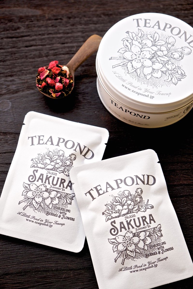 季節限定フレーバーティー サクラのご用意が整いました。当店のサクラはベリーとお花で春をイメージした甘い香り。ベースティーは春摘みのダージリンなのですっきりした味わいです。今年は茶葉50g、ティーバッグ10個入り共にデザイン袋が登場しておりますので贈り物にもぜひ! teapond.jp/products/3028