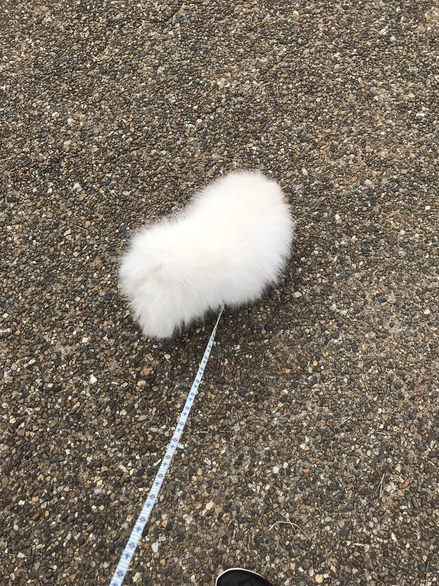 しろくまというかシャリの散歩 あんまり歩かずすぐに抱っこしてくれとせがむので、小脇に抱えて帰ってきました。