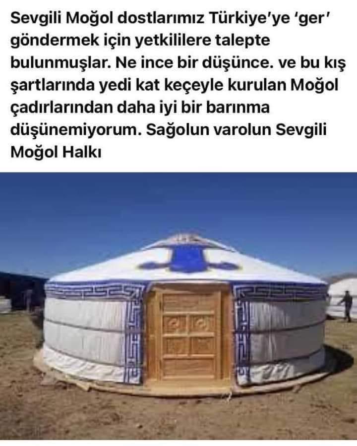 モンゴルの人達はトルコにゲルを送る様に要請しているとの事。この冬に、7枚のフェルトで作られたモンゴルのテント以上のシェルターはないでしょうと。絶対良い支援だよなぁ