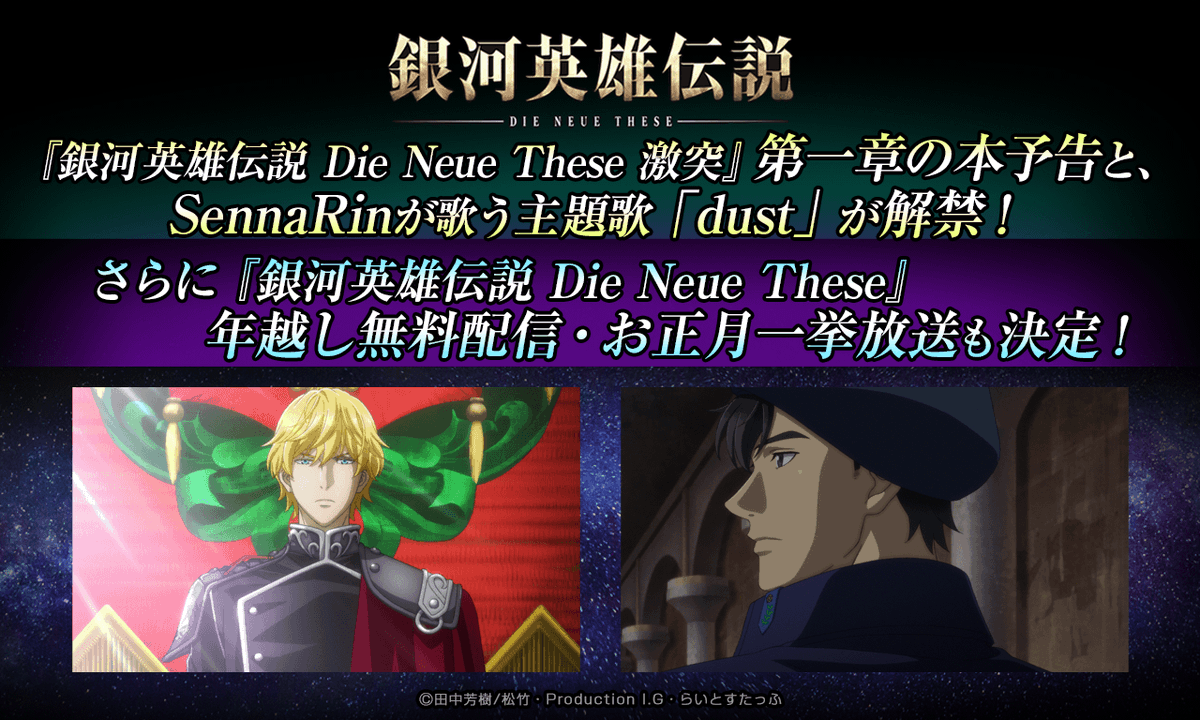 【銀河英雄伝説Die Neue These】新作アニメーション『銀河英雄伝説 Die Neue These 激突』 第一章の本予告と、 SennaRinが歌う主題歌「dust」が解禁に!