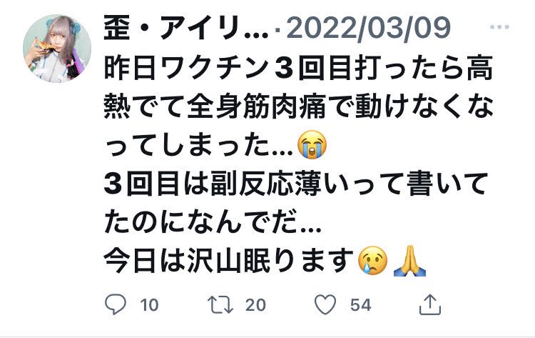 3回目打ち5ヶ月後に謎の死亡