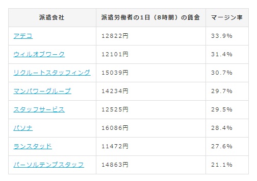 労働者派遣法の施行規則改正で、今年から派遣事業者のマージン率(いわゆるピンハネ率)のネット公開が義務付けられています