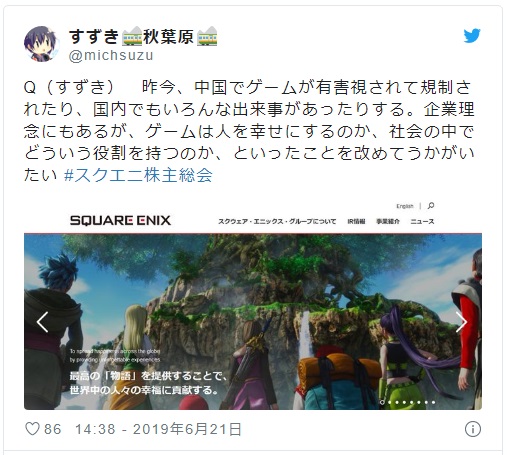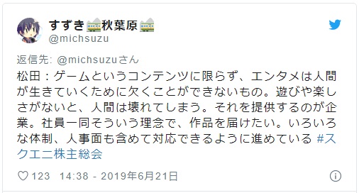 スクエニ株主総会2019レポ michsuzuki.hatenablog.com/entry/2019/06/…