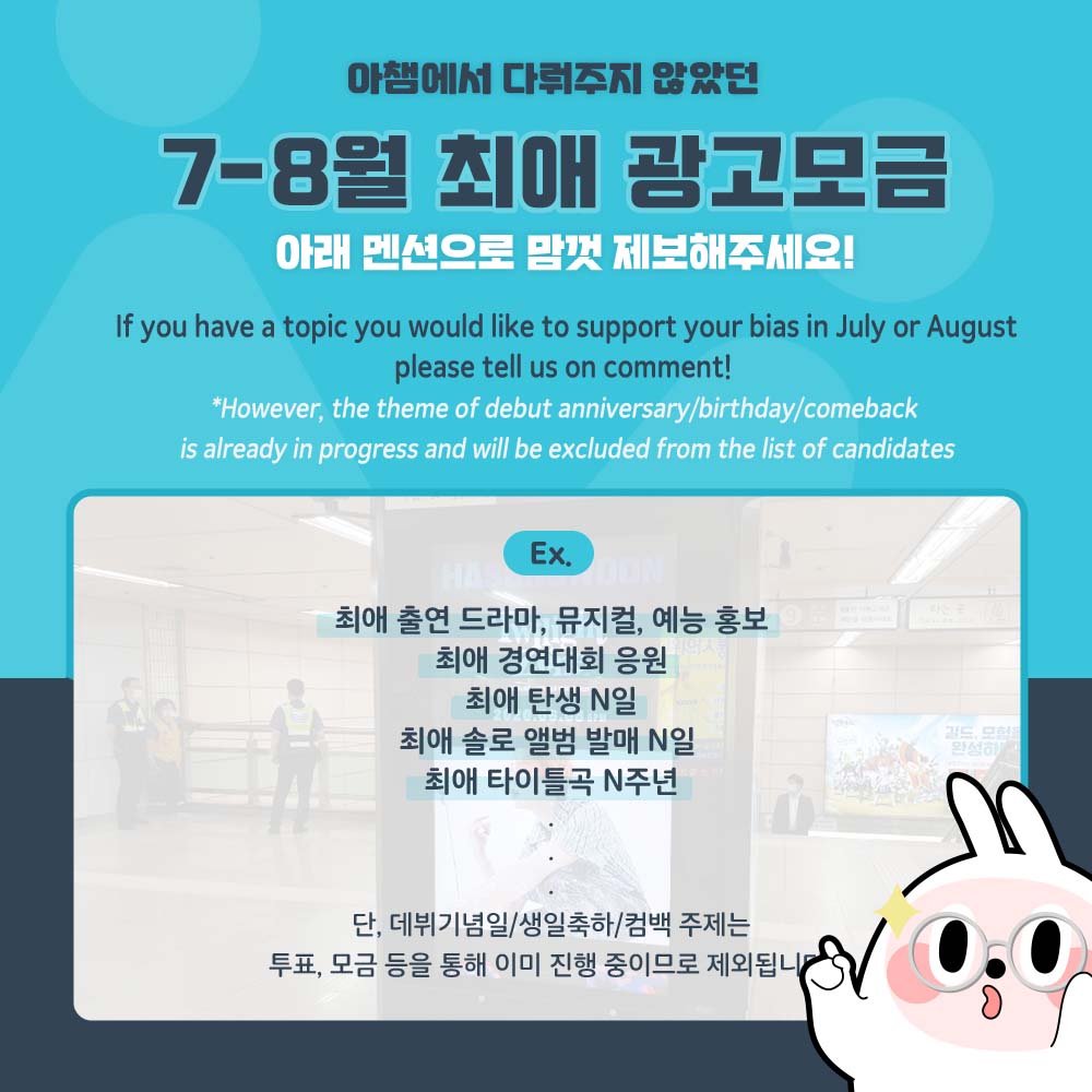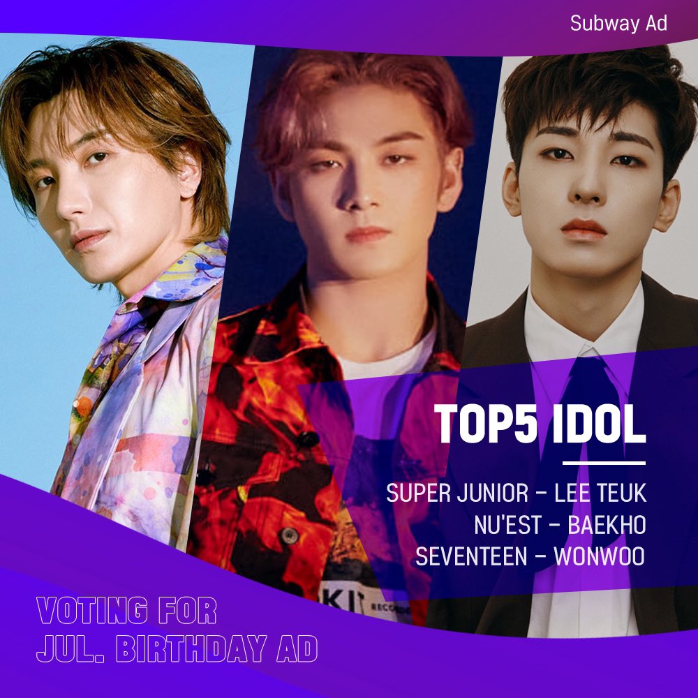 Vote for the idols whose birthday is in July and who will be promoted in subway station ad😊