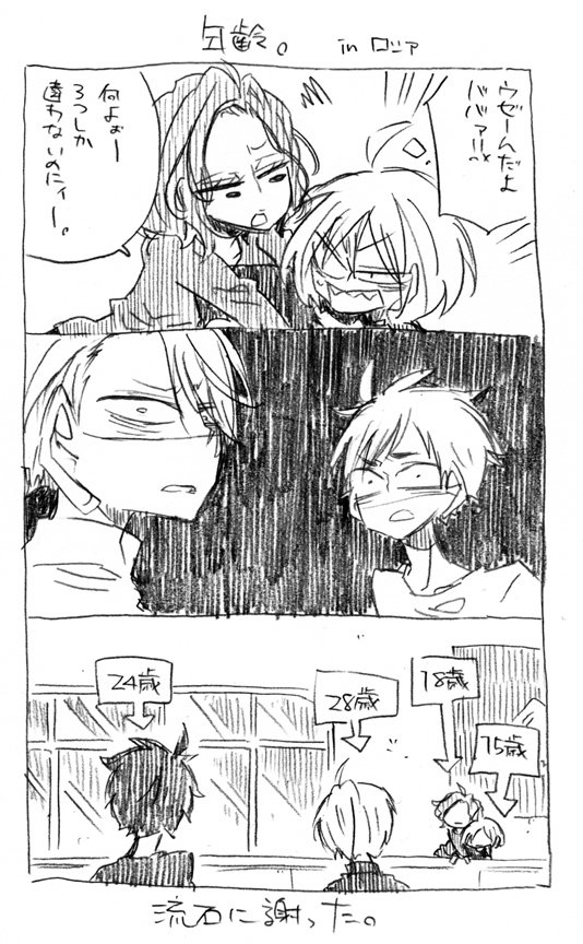 SNS無精のかつきくん③ ヴィク勇前提落描き。 かつきはツイッターを日本向け、インスタを海外向けの情報発信(発信してない)に使ってる設定。 かつきに妊娠疑惑が持ち上がっておりますが彼はれっきとした成人男子です。