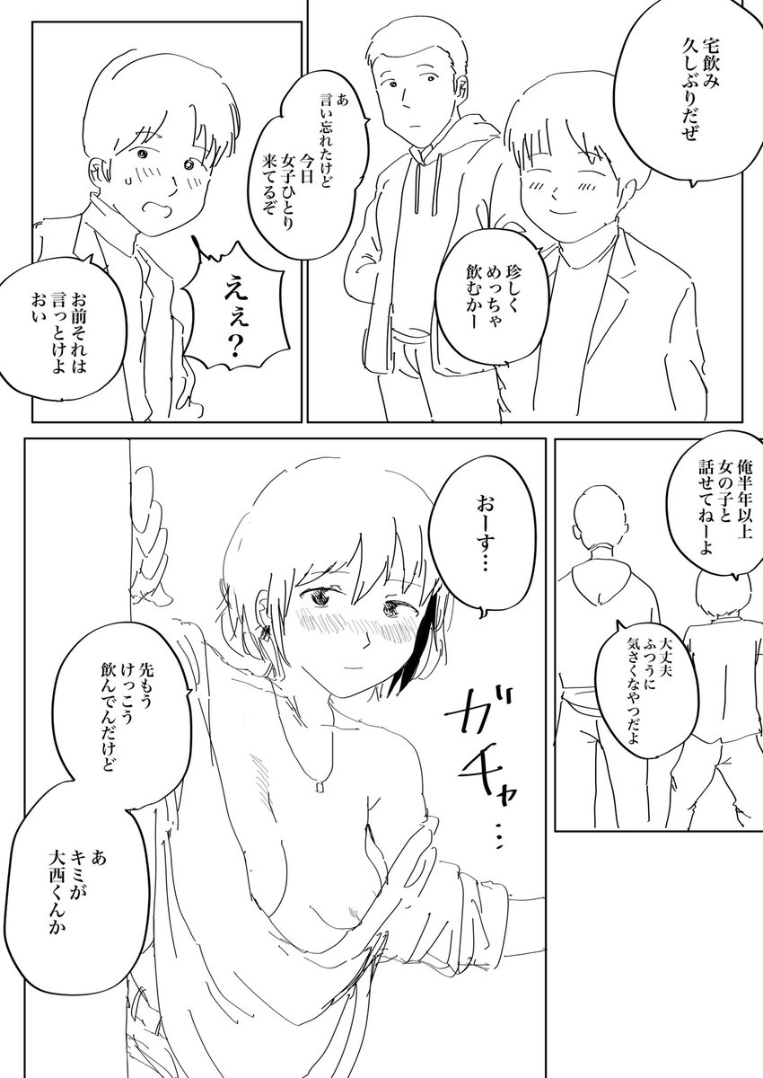 一本軽く途中まで描いてみた 宅飲みの話