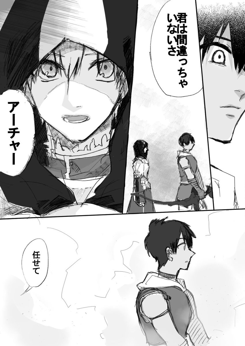 英霊の死と人の死を同じように受け止めちゃうぐだおとちゃうねんと言いたいダヴィンチちゃんと撃たないとは絶対に言わないアーラシュさんの漫画です。