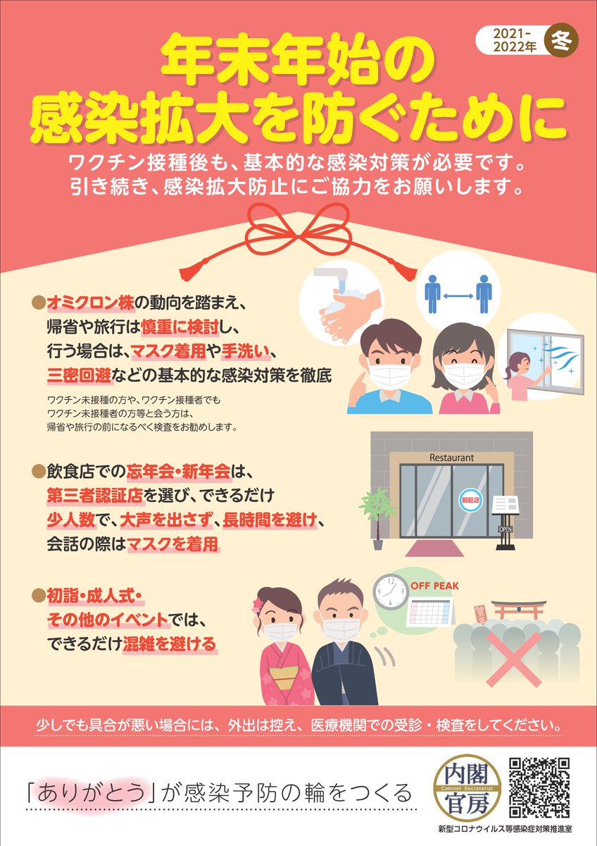 冬休みや3連休明けで明日から学校や仕事の方も多いと思いますが、体がだるい、熱がある、のどに違和感があるなど、少しでも具合が悪い場合には、登校や出勤、外出を控え、医療機関での受診や検査をしてください。(1/2)