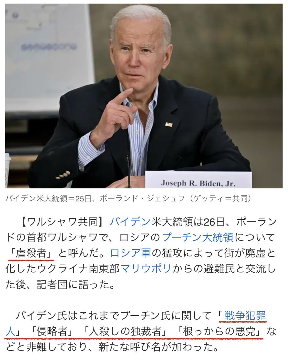 プーチンは決して善人ではない。しかし、それならバイデン、オバマ、ブッシュといった面々はどうなる?プーチンの何倍も人を殺めてきた連中ぞ。日本に来て原爆投下を拍手してやがる。国守るために戦って死んだ先人達がこれを見たらどう思うだろうか。私は合わす顔がない。
