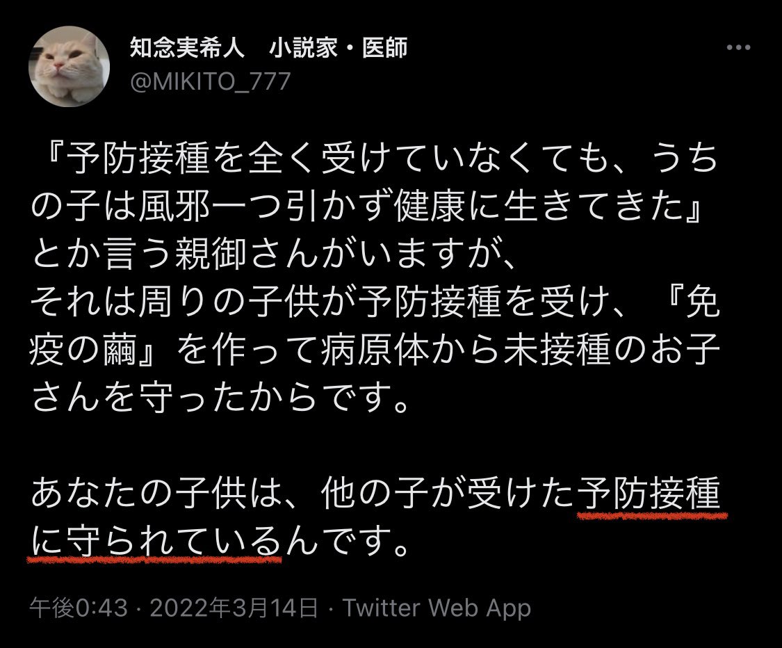 「反ワク」とレッテル貼られることを恐れる人が多い。前置きに必ず「私は反ワクではないんですが〜」と言う。そう言わないと叩かれ、羊の群れからつまはじきにされるからだろう。私は正しいことをして叩かれても全く構わない。たとえ100万人から叩かれても1万人救えるなら全く構わない。