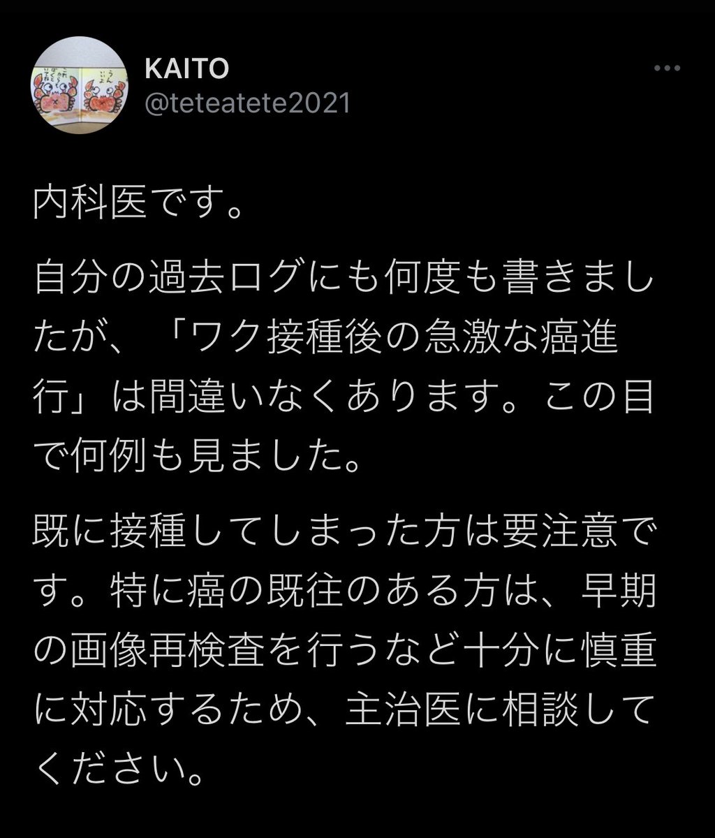 まぁ、私は菅氏もデマ氏も爆沈を打ってると思う。(知らんけど)デマ氏は実際にアトピーだしステロイド治療をしてると公言してるくらいなので単純にただただ無知なんだろうし、安倍氏の実弟である岸防衛大臣クラスでも接種後に入院し、歩行障害が残っている。