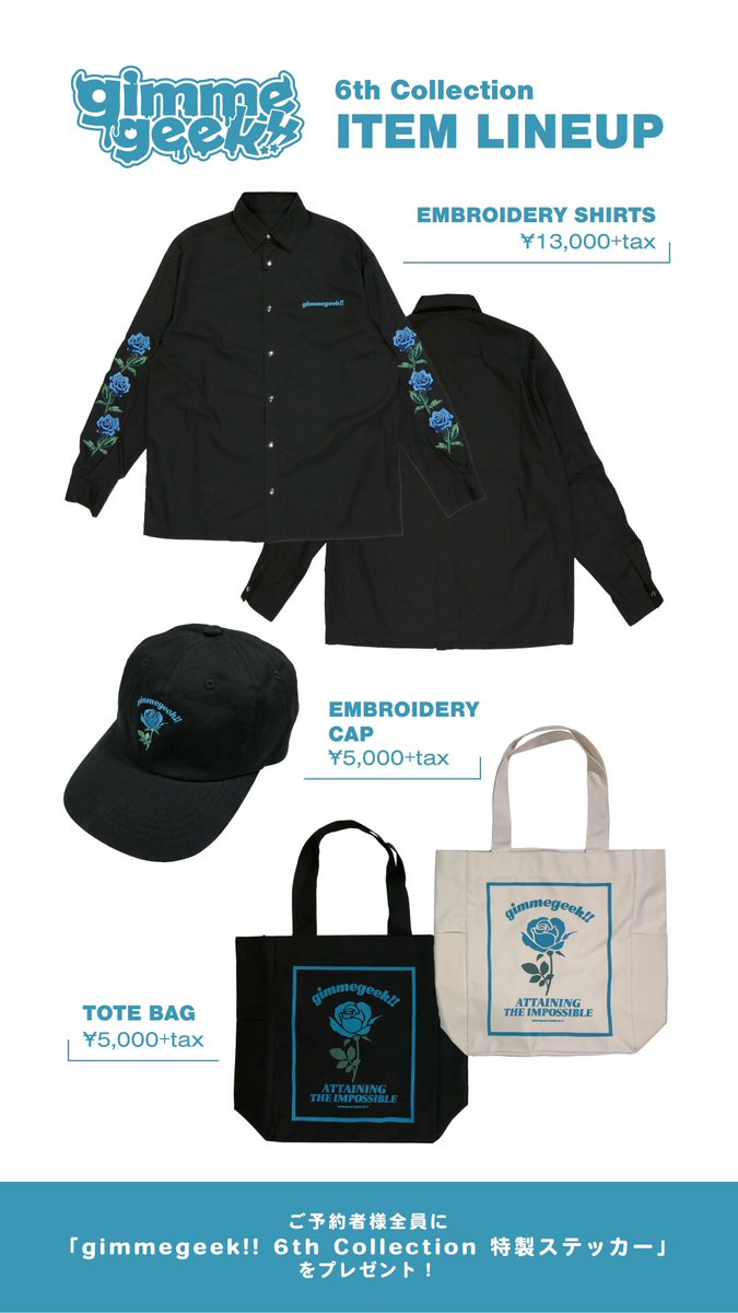 【プレゼント企画】gimmegeek!!ブランドデビューを記念して、1stコレクションアイテムのうちいずれか1点を計3名様にプレゼント!本アカウントをフォロー&このツイートをリツイートで応募完了です。