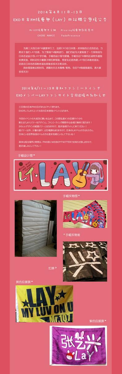 【祝・EXO日本初FM!LAY個人サイト連合応援告知】EXO、そして我らヒーリング天使LAY(レイ)の初日本単独イベントに、レイぺんの皆様! 詳細はこちらへ tl.gd/n_1s1avpf