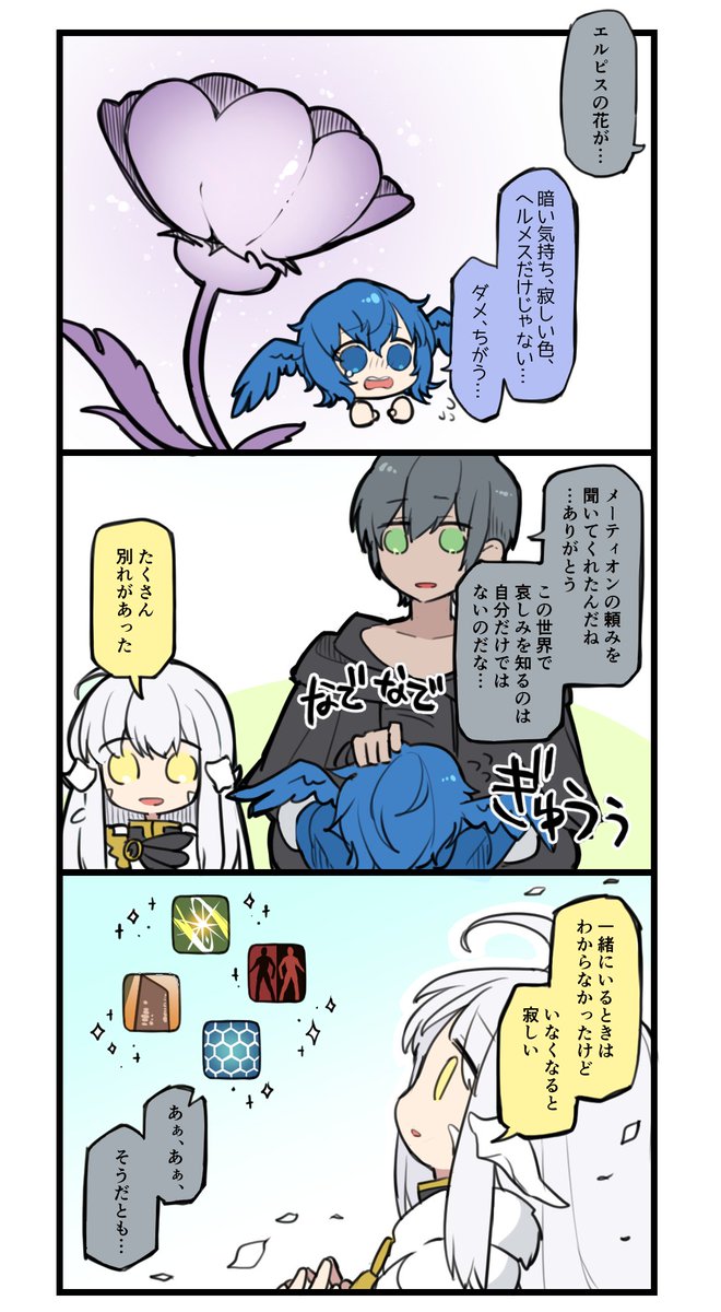 年老いてなお世界各地の冒険を続けた偉大な英雄がある日消息を絶ち、ついに見つからず「まぁあの人のことだから」と惜しまれつつも故人としてアーテリスで語り継がれるようになる一方、実は死の間際のヒカセンへ想いを募らせた我が枝の切なる願いから共にイルメグに還り妖精王に成るという光フェオの話