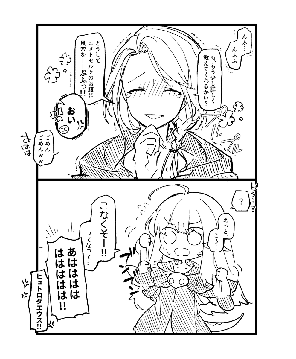 いままで上司への尊敬とほのかな恋情をおくびにも出さず日々真面目に業務にあたって、思うところがある息子にも良い獄卒長として振舞ってきたのに、謎イデアで理性蒸発させられてテミス(→14人委員会)にバラされたあげくヒカセン達によってたかってマイクロビキニ着せられたヘスペロス可哀そうすぎる