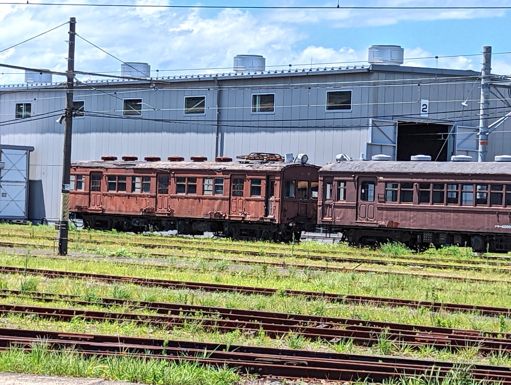 今回の最大の目的、30系の最後の生き残りクモハ11117とクモハ42001 これが見れただけでも嬉しいです😁 暑い中幡生駅から歩きました💦