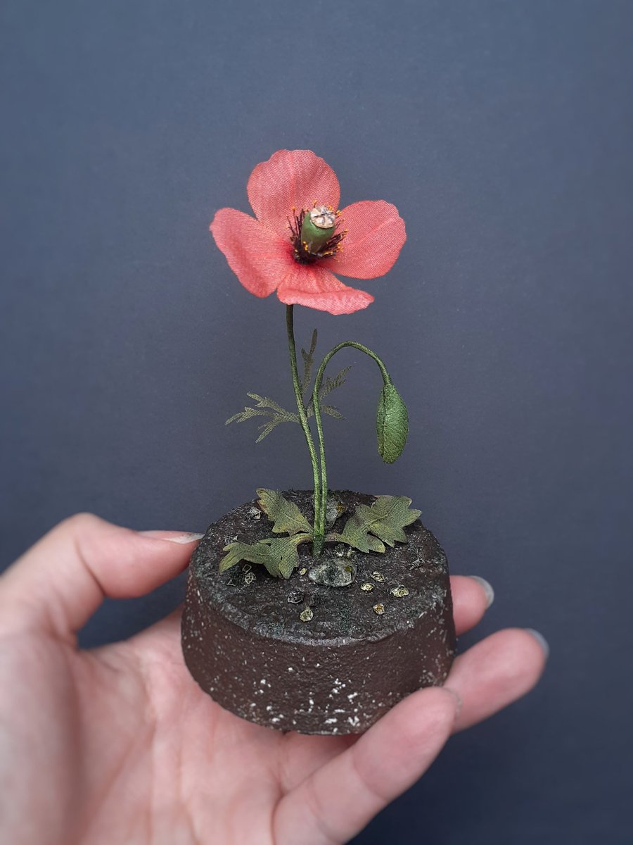 布を染めて作った雛芥子(ナガミヒナゲシ)です。