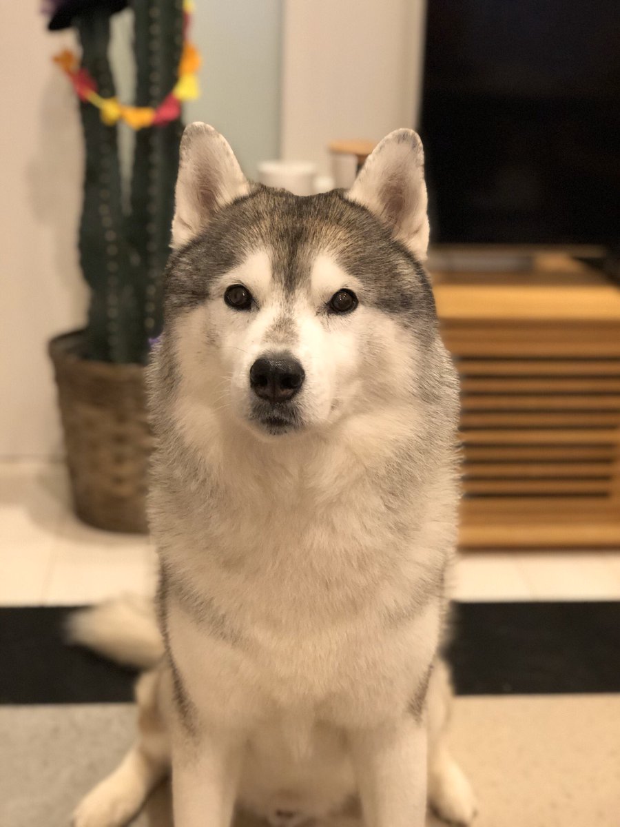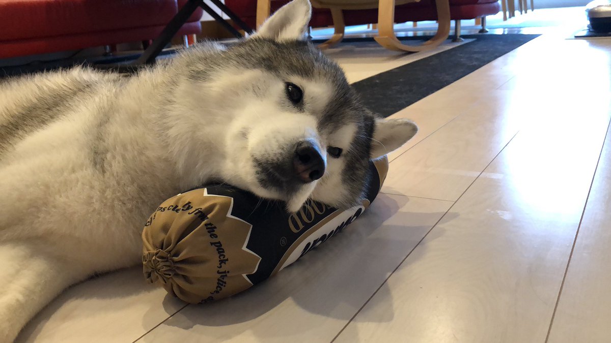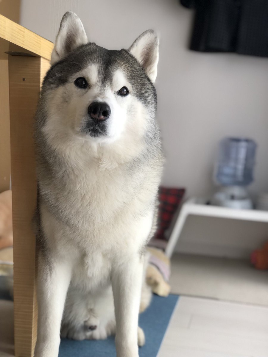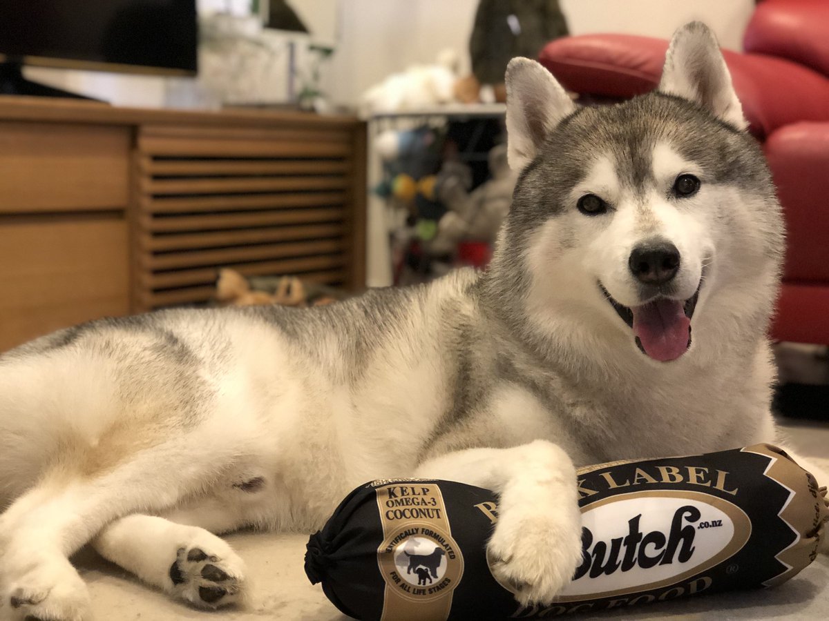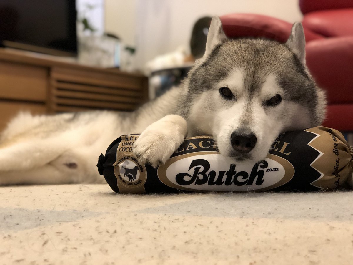 ジャーキーを前に冷静さを保てないシベリアンハスキー