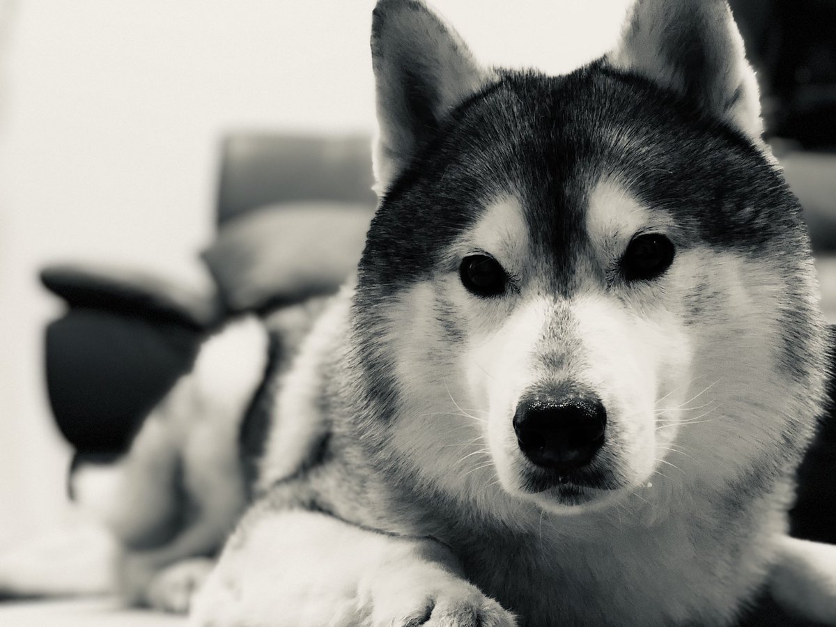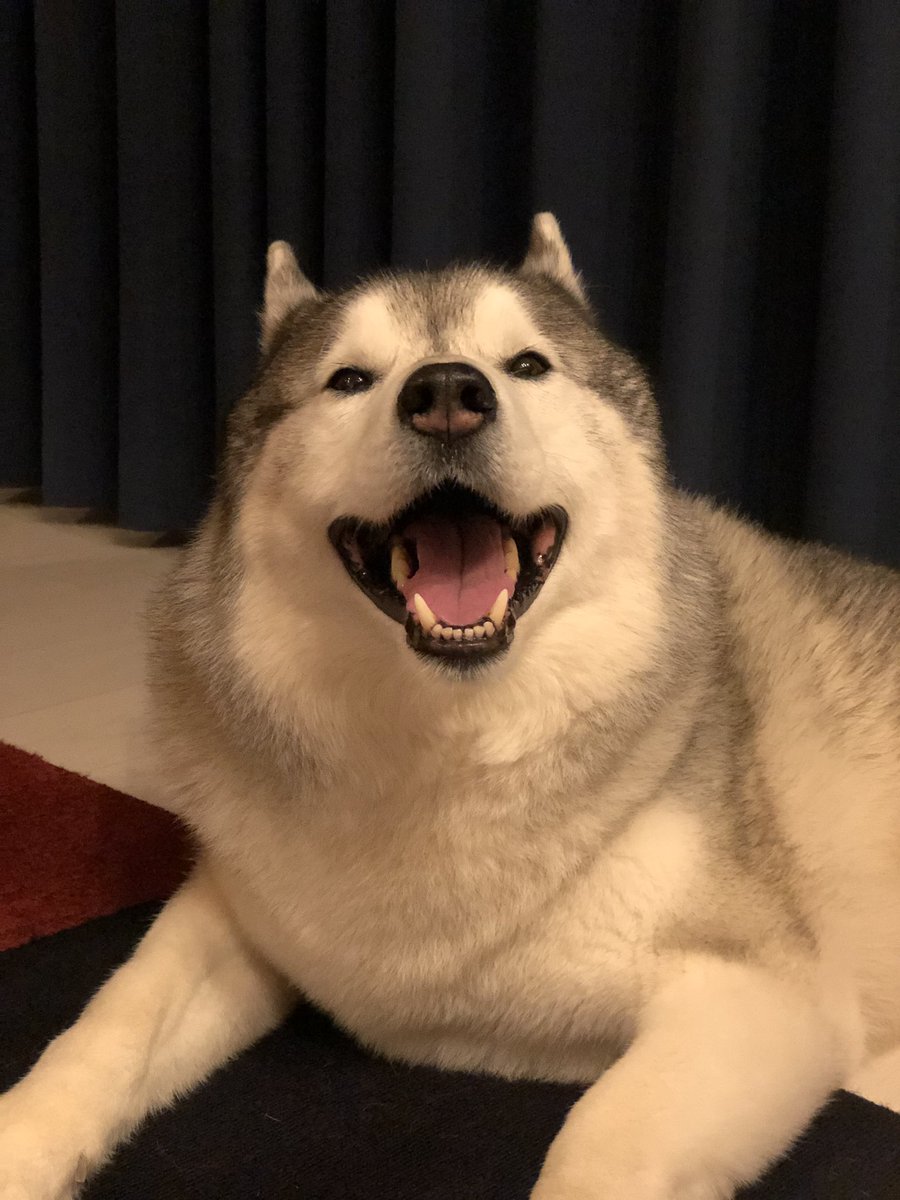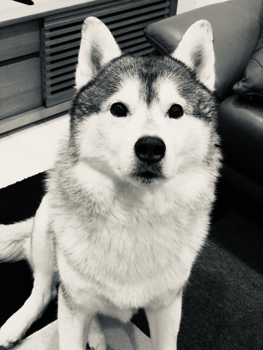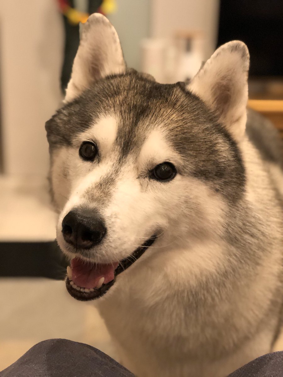 ジャーキーを前に冷静さを保てないシベリアンハスキー