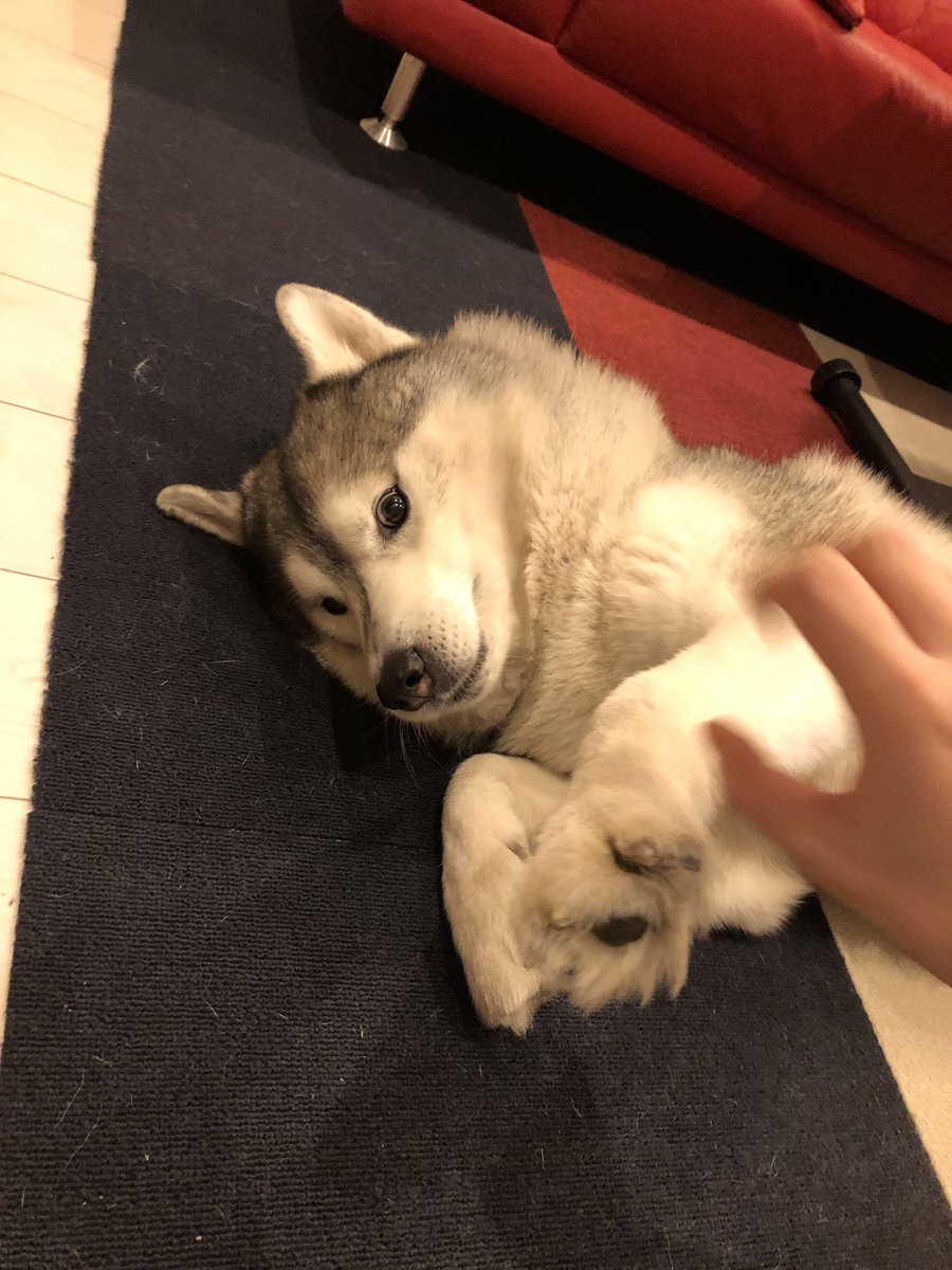 世にも平和な顔で撫でられる文太。