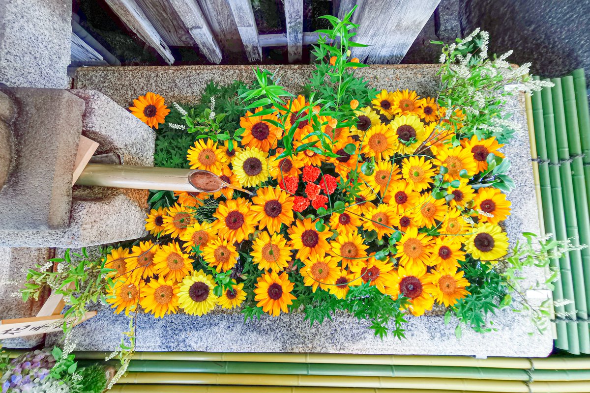 北野天満宮の花手水、ほんとキレイでした🌻