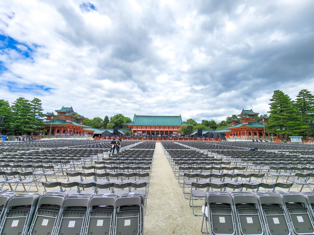 平安神宮では、堂本剛さんによる恒例の奉納演奏が本日から始まります! 会場設営が着々と進んでおります✨