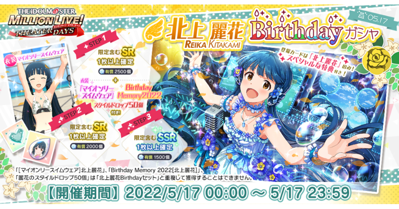 『北上麗花Birthdayガシャ』開催中!