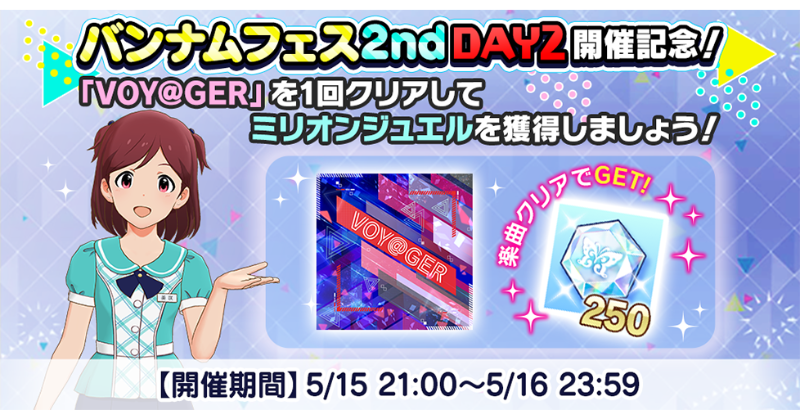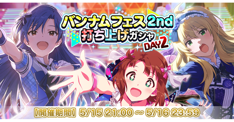 無償ミリオンジュエルでも引ける4回限定の『バンナムフェス2nd打ち上げガシャ DAY2』を開催中!
