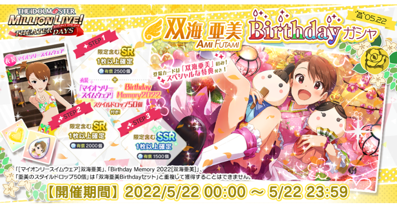誕生日を記念して、亜美ちゃんのカードだけが登場する特別なガシャです♪