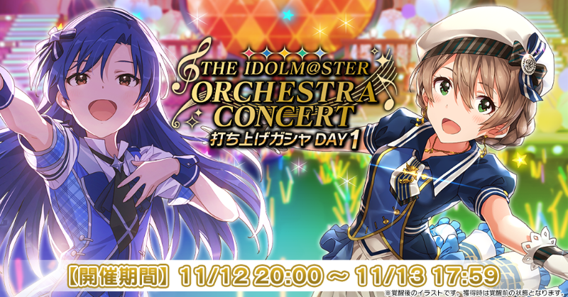 無償ミリオンジュエルでも引ける4回限定の『THE IDOLM@STER ORCHESTRA CONCERT打ち上げガシャ DAY1』を開催中!